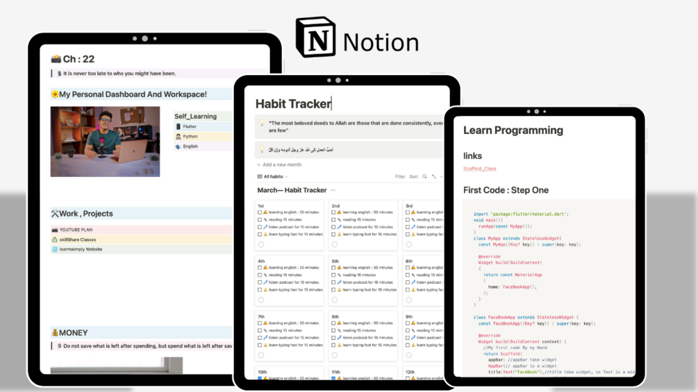 Our collection of templates includes a diverse range of options such as habit tracking, learning programming, mastering a new language, planning your YouTube content, website planning and creating a blog page, and even keeping track of your reading list.